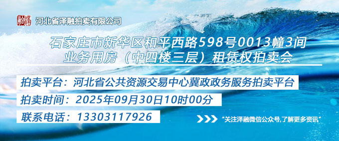 石家莊市新華區和平西路598號0013幢3間業務用房(中四樓三層)租賃權拍賣公告20250930